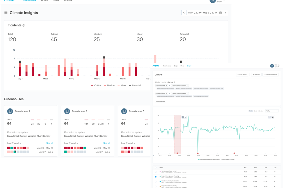 Personally, I find the PYLOT platform very convenient. I see operational information about the state of my greenhouses, I can benchmark historical and the most successful growing cycles with current indicators.