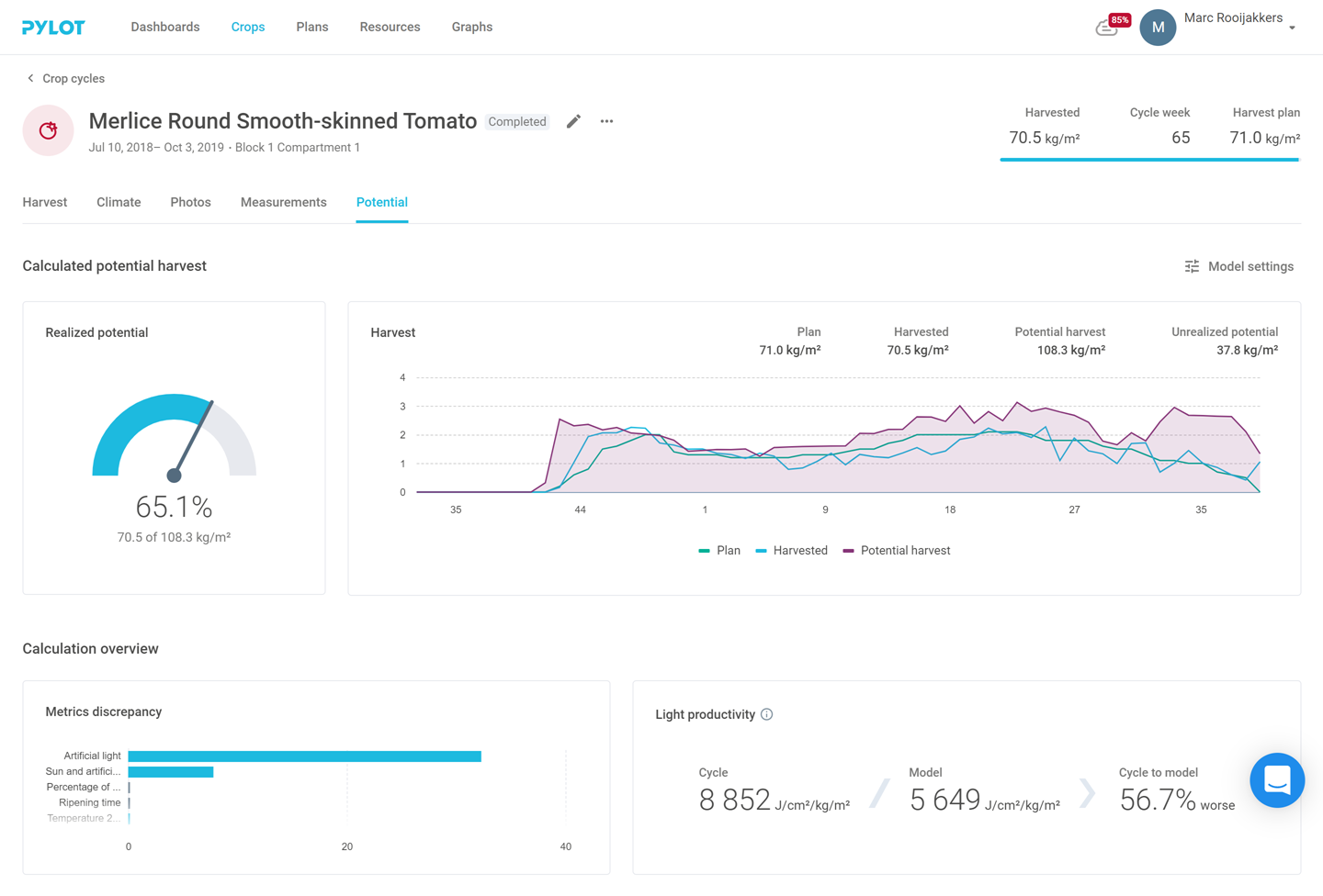 Plannen is vooruitkijken. Met Crop Cycles stelt u heel eenvoudig oogstplannen op, past ze gaandeweg aan, bewaakt ze en vergelijkt ze met de echte resultaten. Het maakt papieren rapporten en Excel-bladen overbodig. PYLOT presenteert de gestelde oogstdoelen en de voortgang in heldere visuals. Voor een goed en helder overzicht van uw teeltschema en KPI’s.