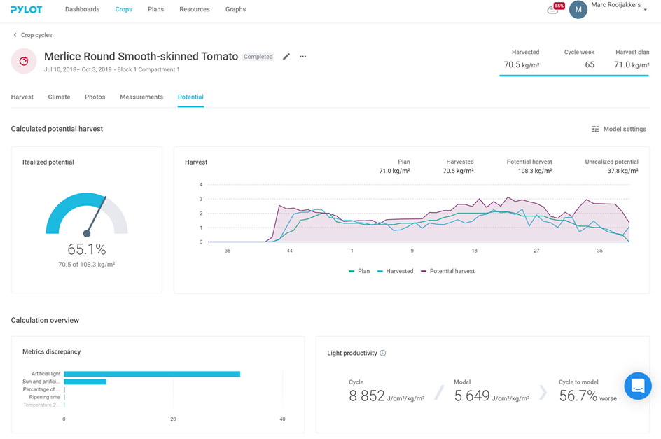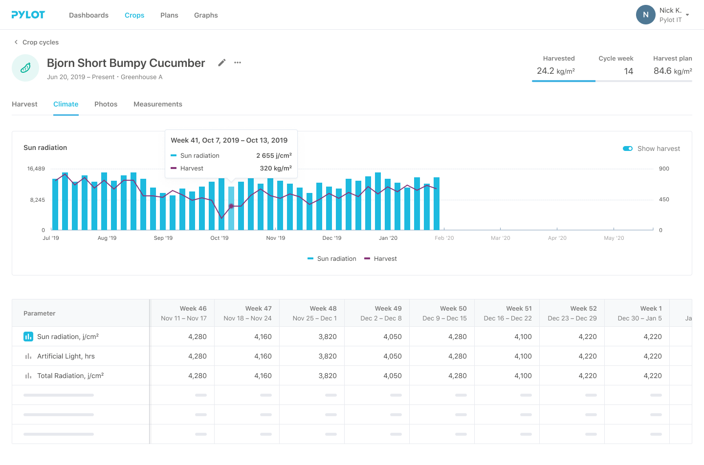 Persoonlijk ervaar ik het platvorm van zeer toegevoegde waarde. Ik heb toegang tot mijn operationele informatie en de staat van mijn kassen. PYLOT stelt mij in staat om de historische en meest succesvolle teeltcycli te vergelijken met de huidige indicatoren.