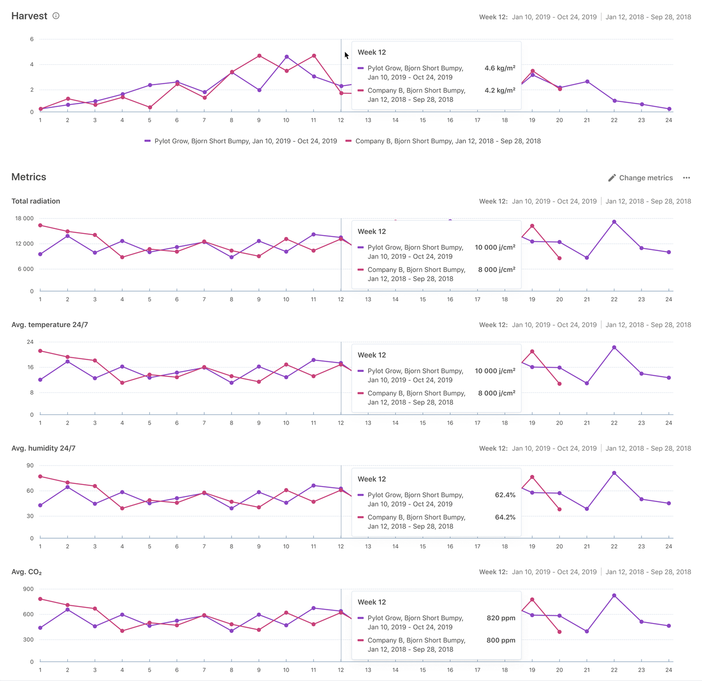 Daarom ontwikkelden wij PYLOT. Een slim managementsysteem dat data analyseert, interpreteert en de resultaten overzichtelijk presenteert. Zodat u weet wat er speelt, kunt bijsturen als het nodig is en zo uw oogst kunt optimaliseren en uw rendement verhogen.